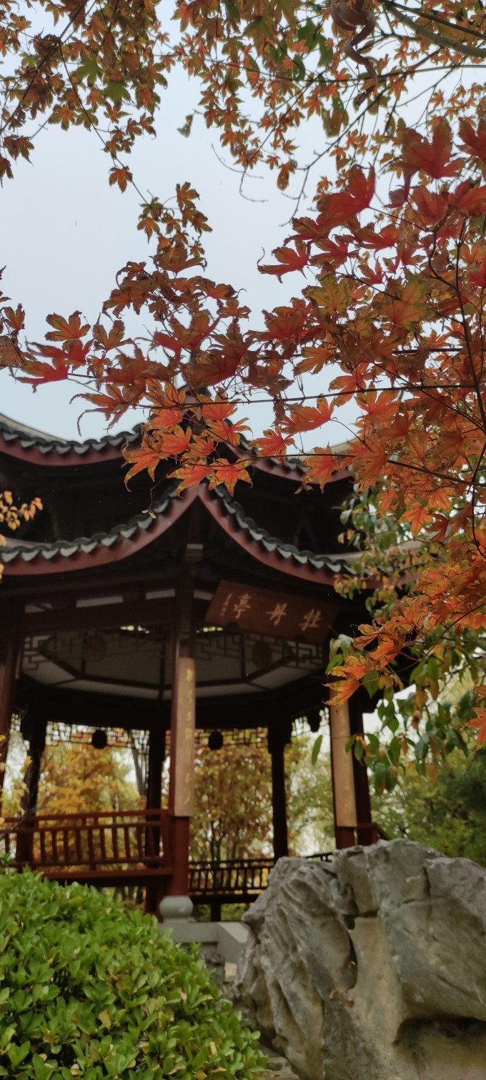 - 秋天是色彩最浓烈的季节,江南的秋季还从来没有机会去过,而园博园正好可以在10月提前感受江南园林的秋天。红叶与山石之间的亭台相对,柱子的红漆似乎是为了匹配天然的秋色,院墙上、假山上挂着红色的爬山虎,黄色的树叶在空中摇曳,树叶洒满满粉墙上的黛瓦,山墙有如波浪一般的画框,画中是层次分明的树林,园中湖水也出现彩色的倒影。