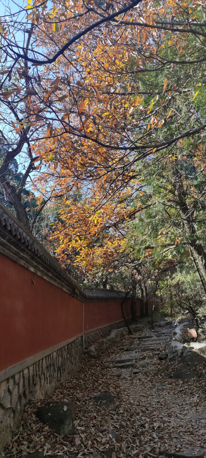 无论是红螺寺后山还是雁栖湖西山,红叶数量都不少,但也不是成片的红叶林,叶子红、黄、绿相间,只有很小的一片区域是比较单一的颜色,但也是浓浓的秋意,山水之间大自然的浓墨重彩,配上湛蓝色的天空,从远景看还是北京最美的时节。